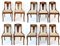 Dieci sedie in noce massello con schienale a giorno traforato, seduta in tessut