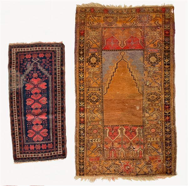 Lotto composto da due tappeti preghiera, uno anatolico e l’altro persiano. Seco