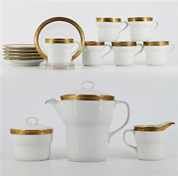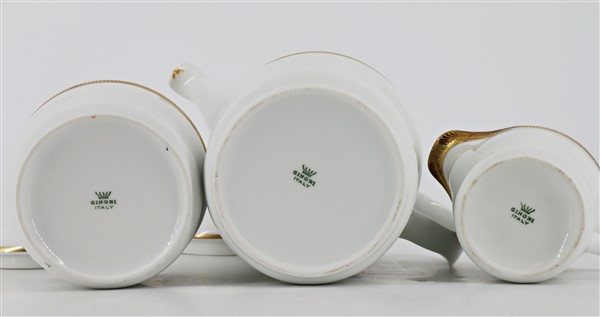 Manifattura Ginori, servizio da caffè in porcellana bianca profilata in oro com