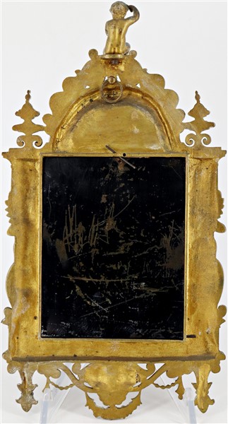 in cornice in bronzo a edicola centinata e traforata (totale cm 29,5x16) (difetti)