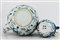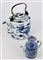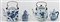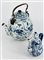 Lotto composto da quattro teiere in porcellana bianca e blu con decori vari Ci
