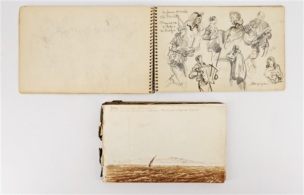 Due taccuini di disegni. Uno di Grand Tour di viaggiatore inglese (datato 1839) e l'altro carnet di schizzi di ignoto francese del Novecento (difetti)