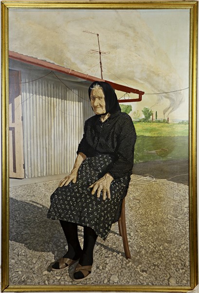Ignoto "Ritratto di anziana" 1973, olio su tela (cm 150x100) firmato Diana e da