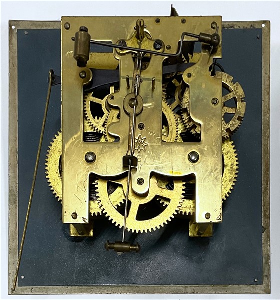 Orologio da parete con quadrante bianco a numeri arabi. Movimento a due treni c