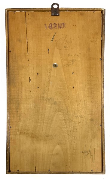 Orologio da parete con quadrante bianco a numeri arabi. Movimento a due treni con suoneria delle ore e mezze. Anni '30 (h cm 110) (difetti e mancanze)