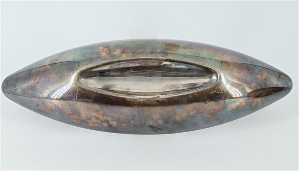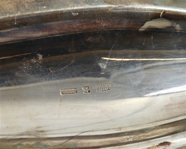 Manifattura Christofle. Lotto composto da due centrotavola ed un set di quattro salini in vetro e metallo argentato (L. max cm 36) (difetti)