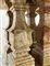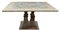 Tavolo con piano quadrato e gambe centrali a balaustro su base gradinata, reali