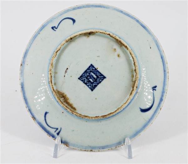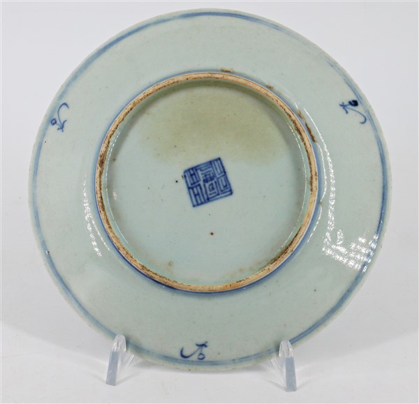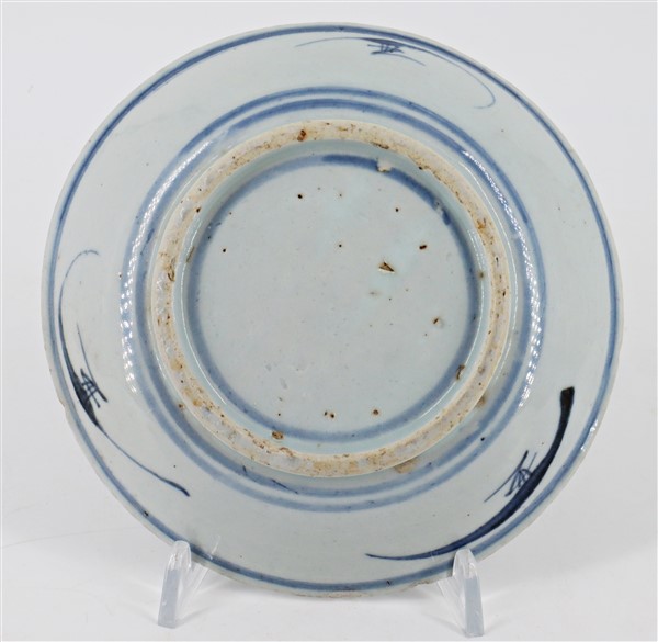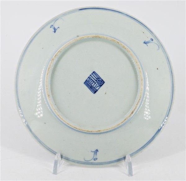 Cinque piattini in porcellana bianca e blu decorati con motivi floreali Cina,