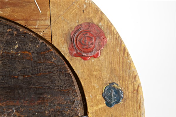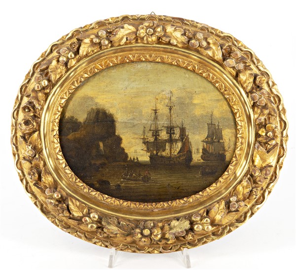 Ignoto del secolo XVIII "Marina con velieri" olio su tavola (cm 17,5x22) Iscri
