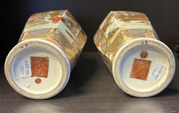 Due vasi satsuma decorati con personaggi recanti marchio della manifattura sul