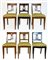 Lotto composto da sei diverse sedie in legno, schienale traforato centrato da e