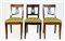 Lotto composto da sei diverse sedie in legno, schienale traforato centrato da elemento a lira (difetti)