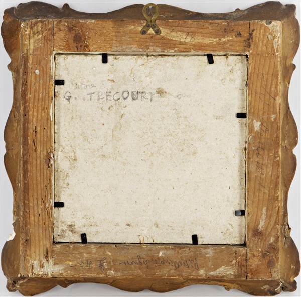 Giacomo Trecourt (Attribuito) "Ritratto femminile" olio su tela applicata a ca