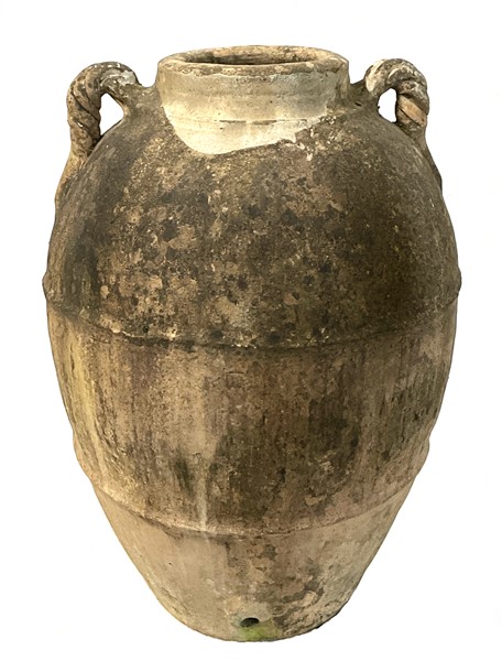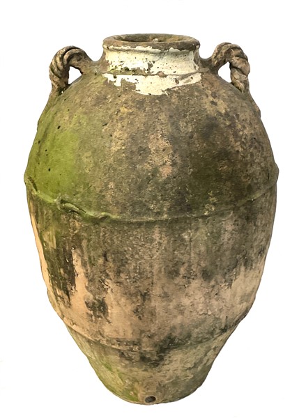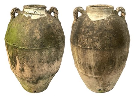 Coppia di orci biansati in terracotta (h. cm 78 e 80) (difetti)