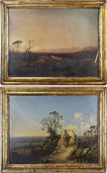 Ignoto di inizio secolo XIXLotto composto da due "Coppie di paesaggi" olio s