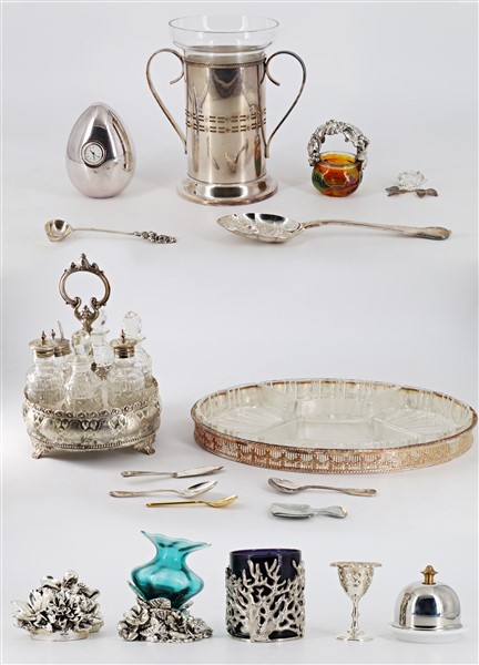 Lotto composto da numerosi oggetti in metallo argentato di usi, forme e decori