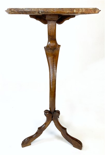 Guéridon in noce intagliato di forma mossa poggiante su base tripode. Veneto, secolo XVIII (cm 45x84x36) (difetti e restauri)