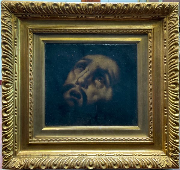 Ignoto Antico dipinto raffigurante "testa di San Francesco" olio su tela (fram