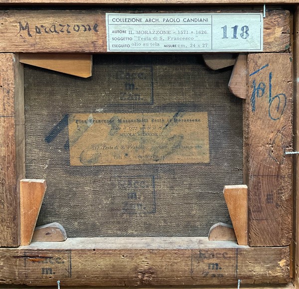etichette al verso con indicazione della collezione "Paolo Candiani" e con attribuzione a Pier Francesco Mazzucchelli detto "il Morazzone"