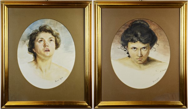 Bianca Galli "Coppia di studi per ritratti femminili" acquerello su carta ova