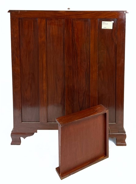 Ribalta Navy in mogano decorata da filettature in ottone, fronte a sei cassetti