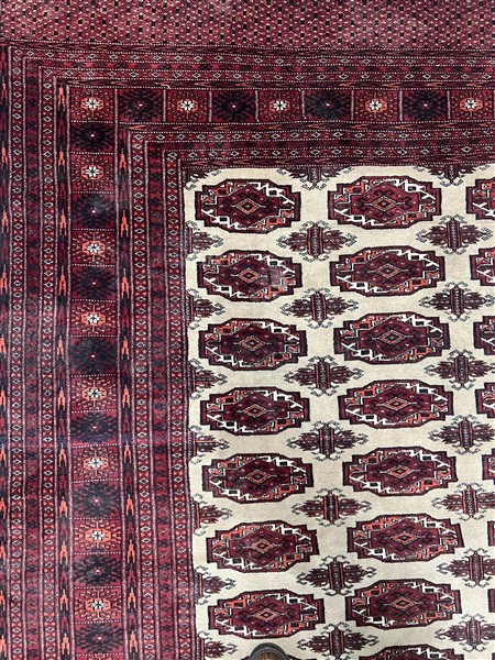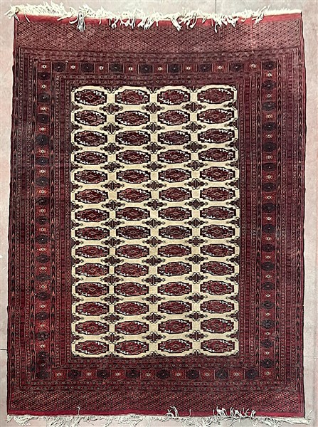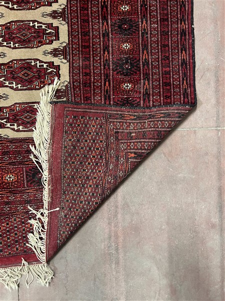 Lot 1639 | Tappeto Boukhara, Pakistan, secolo XX. Decoro con quattro file di Gül rossi su