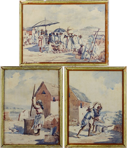 Ignoto del secolo XX, Lotto composto da tre acquerelli su carta raffiguranti "S