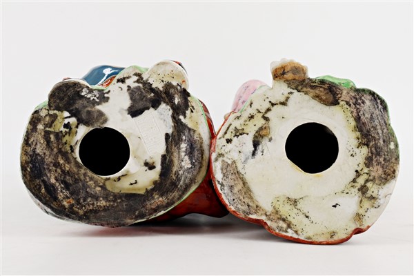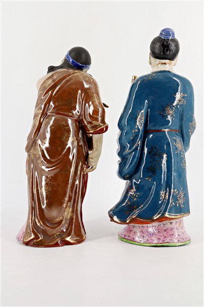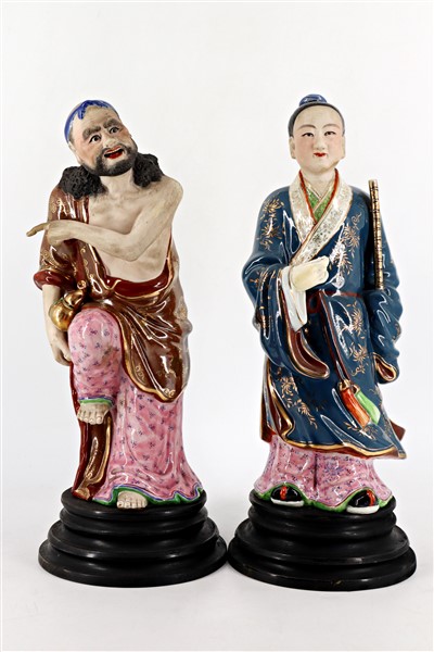 Due figure in biscuit e porcellana Cina, secolo XIX/XX (h cm max 31)(difetti e