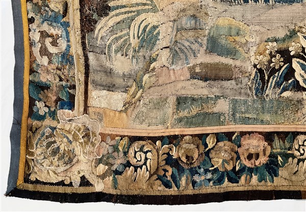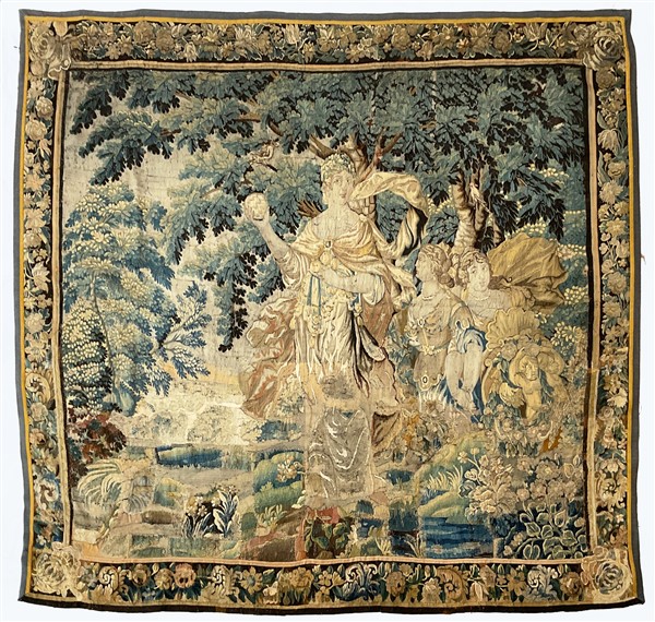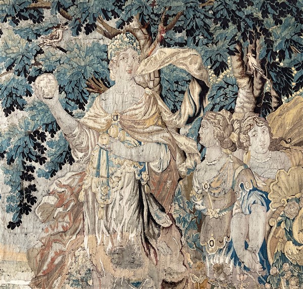 Manifattura di Bruxelles, secolo XVII. Frammento di arazzo raffigurante Pomona,