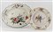 Manifattura di Faenza, secolo XVIII. Lotto composto da un vassoio ovale e un piatto in maiolica decorate in policromia a fiori (cm max 31,5x25) (difetti e restauro)