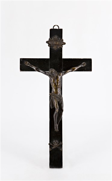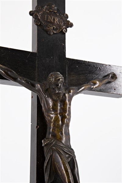 Lot 1686 | Arte del secolo XIX. Crocefisso in bronzo su croce in legno ebanizzato (cm tota