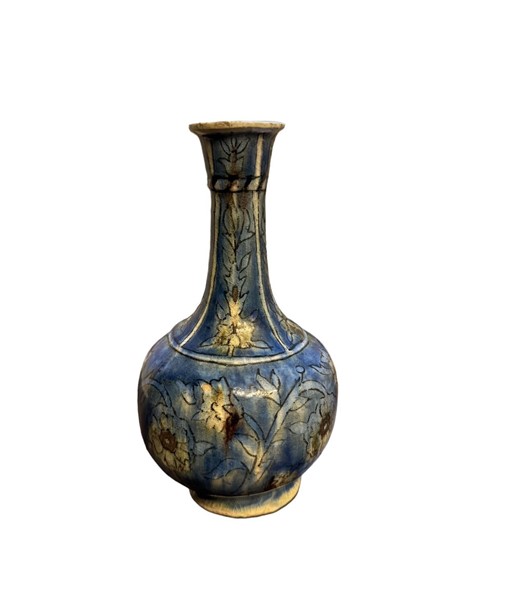 Vaso in smalto azzurro decorato con motivi florealiMedio oriente, secolo XIX(
