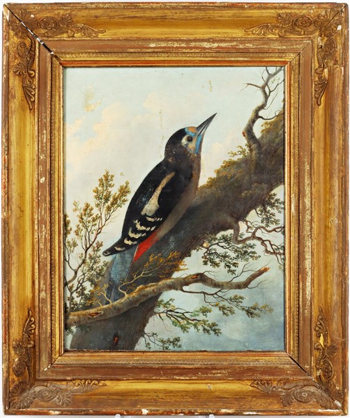 Ignoto di inizio secolo XX "Il picchio" olio su tela (cm 32x26,5) in cornice