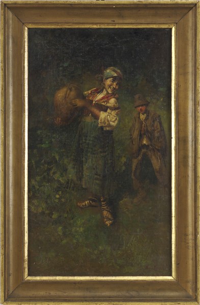 Tito Pellicciotti (Attribuito) "Pastorelli" olio su tela (cm 61x37) Firmato in
