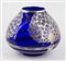Vaso in vetro blu con applicazioni in argento a forma di pavone (h. cm 18) (difetti)