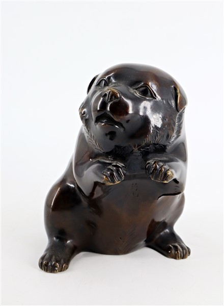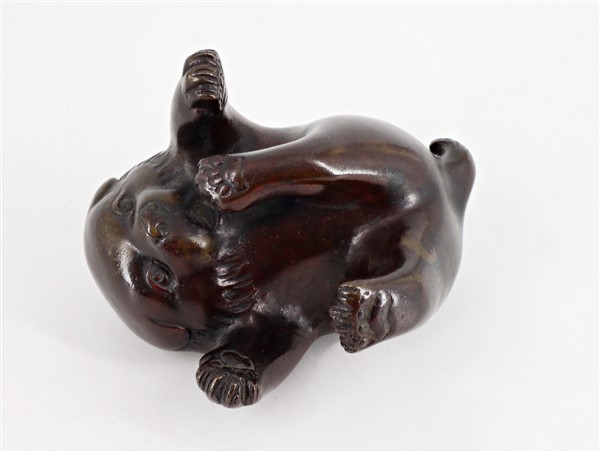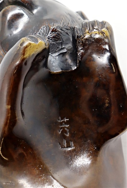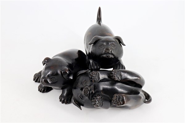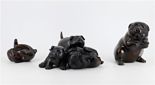 Lotto di due maialini in bronzo recante firma unito ad un gruppo scultoreo raff