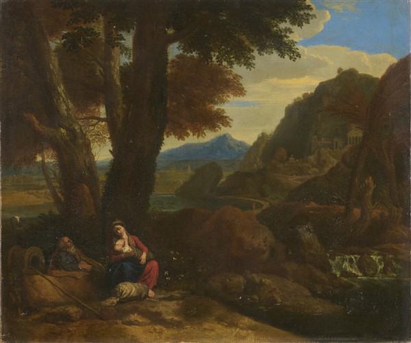 Scuola romana della fine del secolo XVII "Riposo durante la fuga in Egitto" ol