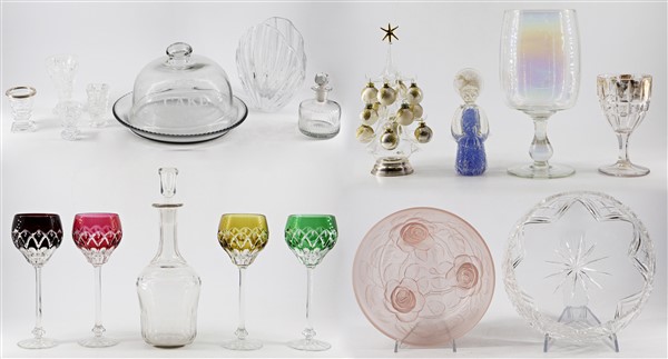Lotto composto da numerosi oggetti diversi in vetro e cristallo. In due cartoni (difetti)