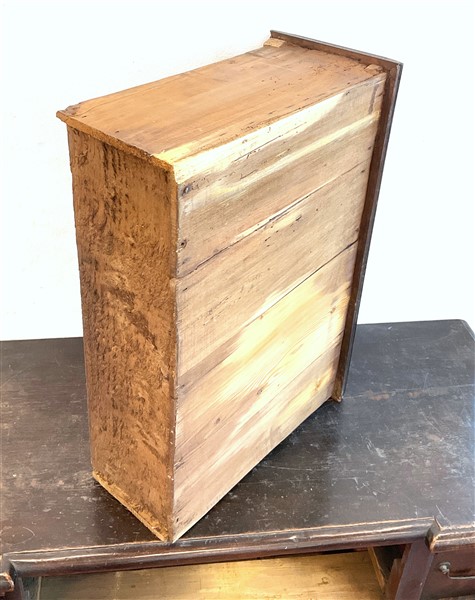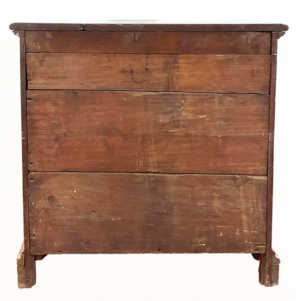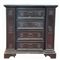Antica cassettiera con fronte a quattro cassetti e lesene incernierate celanti