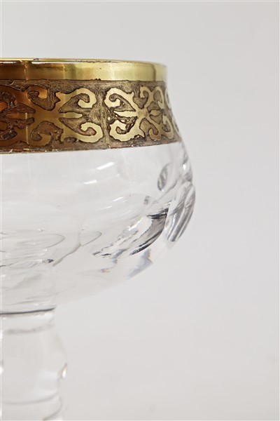 Servizio di bicchieri in vetro molato con bordure dorate composto da dodici cal