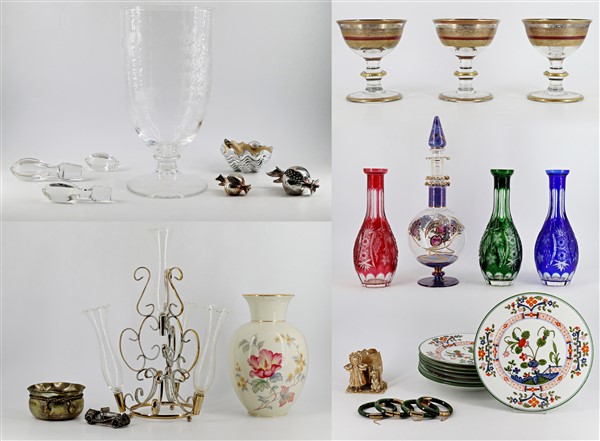Lotto composto da numerosi oggetti di materiali, forme, decori ed usi diversi.