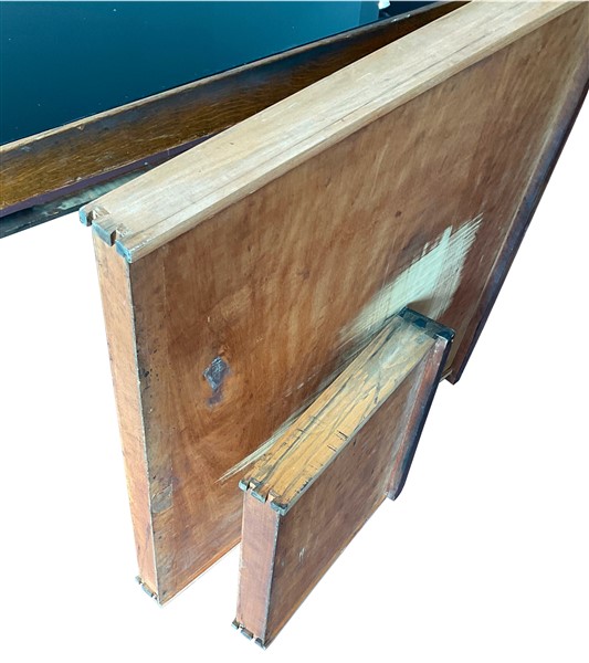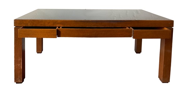 Lot 1793 | Grande scrivania in legno con cassetti sottopiano, piano in vetro retrovernicia