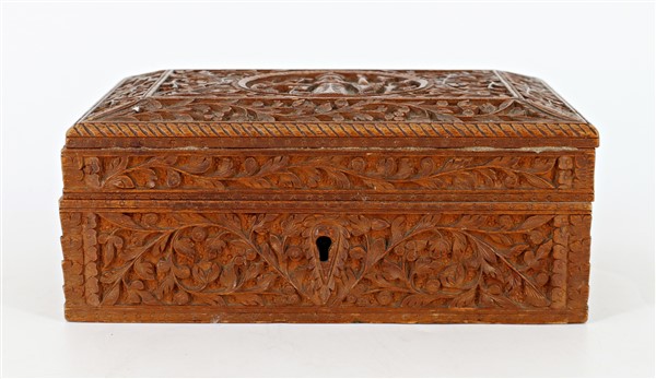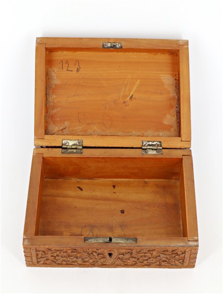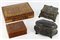 Lotto composto da quattro diversi cofanetti in legno e metallo di forme e decori differenti di cui una intarsiata in legni vari di manifattura mediorientale (cm max 29x20) (difetti)