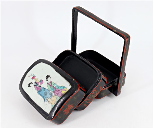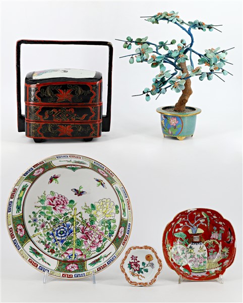Lot 1813 | Cartone contenente diversi oggetti in porcellana, pietra dura e lacca Cina, sec