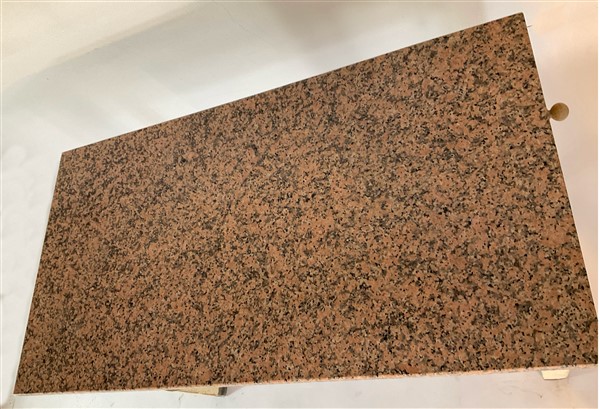 Tavolo in legno laccato bianco con due cassetti e vano porta mattarello sottopiano. Basi della gambe e maniglie in anticorodal, piano in graniti rosa di Baveno non coevo. Italia, anni '30/'40. (cm 130x70x81) (difetti e restauri)