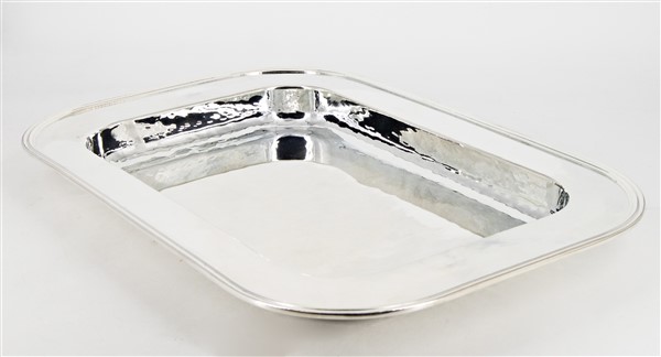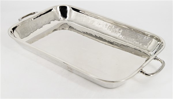 Lotto composto da una legumiera biansata in metallo argentato di forma ovale co