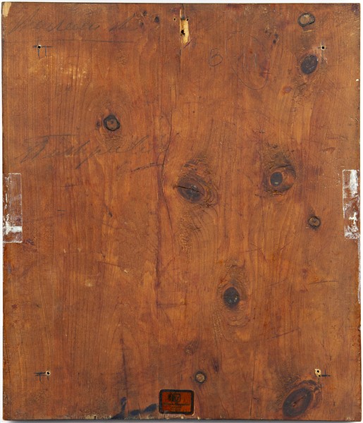 Arte russa, secolo XIX, icona raffigurante la Madonna di Pokrov, tempera e oro su tavola (cm 31x26,5), montata su pannello laccato (difetti e restauri)
