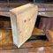 Trumeau di linea spezzata lastronato e filettato in legni vari. Parte superiore