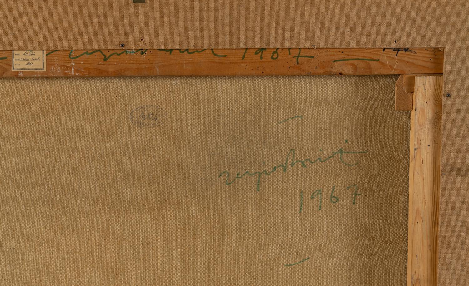 Sergio Romiti (Bologna 1928 - 2000), “Composizione”, 1967.Olio su tela, firmato e datato al retro, reca numerazione 10.824 della Galleria del Milione - Milano e numerazione 12.320 della Galleria La Nuova Loggia - Bologna, H cm 75x80 - Notes: Opera pubblicata in: “Sergio Romiti. Catalogo ragionato dei dipinti” a cura di G. Salvatori, pp. 576, tav. 1009. Provenienza: Collezione Privata Zaccardi – Bologna; Galleria La Nuova Loggia – Bologna; Collezione G. e S. Formica – Milano; Galleria del Milione – Milano.