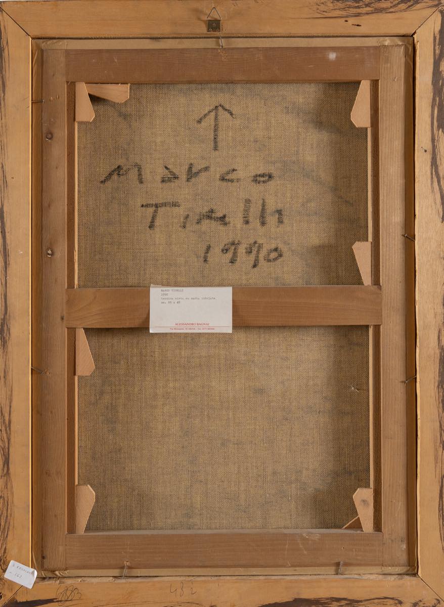 Marco Tirelli (Roma 1956), “Senza titolo”, 1990.Tecnica mista su carta intelata, reca al retro firma, data ed etichetta della Galleria Alessandro Bagnai - Siena, H cm 69x49 (difetto)